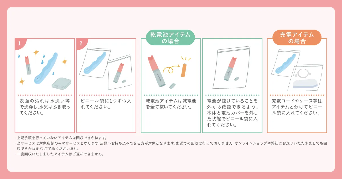 2025年3月より開始し、ご好評いただいておりました、irohaプレジャーアイテム®の店舗回収サービスにつきまして、対象のiroha SHOPでも実施いたします。